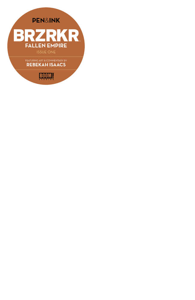 A special pen & ink edition of BRZRKR: Fallen Empire by Mattson Tomlin and Rebekah Isaacs, in a premium format with additional commentary by the artist! The lone survivor of Olos, a long-dead empire that once thrived, tells a tale of B.'s distant past, and the death and cataclysm he brought forth. But what else did B. find that could have driven him to such violence? The heart is as much a weapon as any in B.'s arsenal...