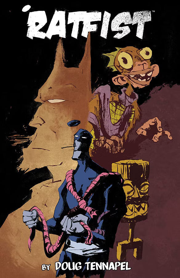 Earthworm Jim creator DOUG TENNAPEL is publishing his Webcomic RATFIST, a vigilante-in-tights that satirizes comics, politics, philosophy, and even TENNAPEL himself! Featuring a forward written by MST3K/RiffTraxx's MICHAEL J. NELSON, and pinups by RYAN OTTLEY, SCOTT KURTZ, CHRISTOPHER HASTINGS and ETHAN NICOLLE!