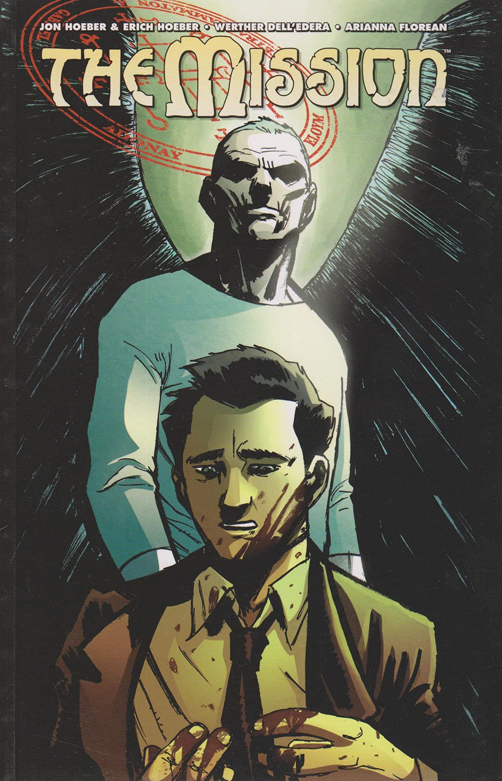 story JON & ERICH HOEBER art & cover WERTHER DELL'EDERA & ARIANNA FLOREAN Paul Haskell's average suburban life is upended when a mysterious figure claiming to be an angel taps him as a foot-soldier in the hidden war between Good and Evil. As Paul descends into a dark disturbing world of covert missions and murder, he struggles to discern reality from illusion, good from evil, and sanity from madness.