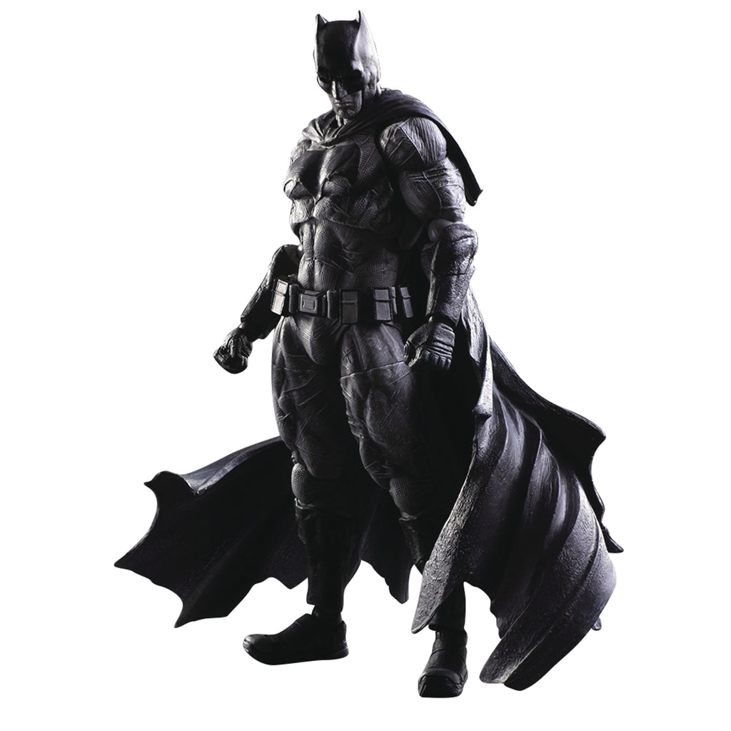 From Square Enix. Batman v Superman: Dawn of Justice depicts the clash of two iconic heroes in the DC Comics universe. From recreating the likeness of Batman's face to the texture of his body and suit, there are fine details incorporated within the simplicity, and the paintwork makes the care that was put into the sculpting shine. This figure, which also includes the various signature gadgets that Batman carries in his arsenal, a display stand and interchangeable hand parts, exudes the image of a dark hero that stands against the light. This exclusive item for Comic-Con International: San Diego 2016 features a black and white paint scheme and is available for purchase while supplies last.