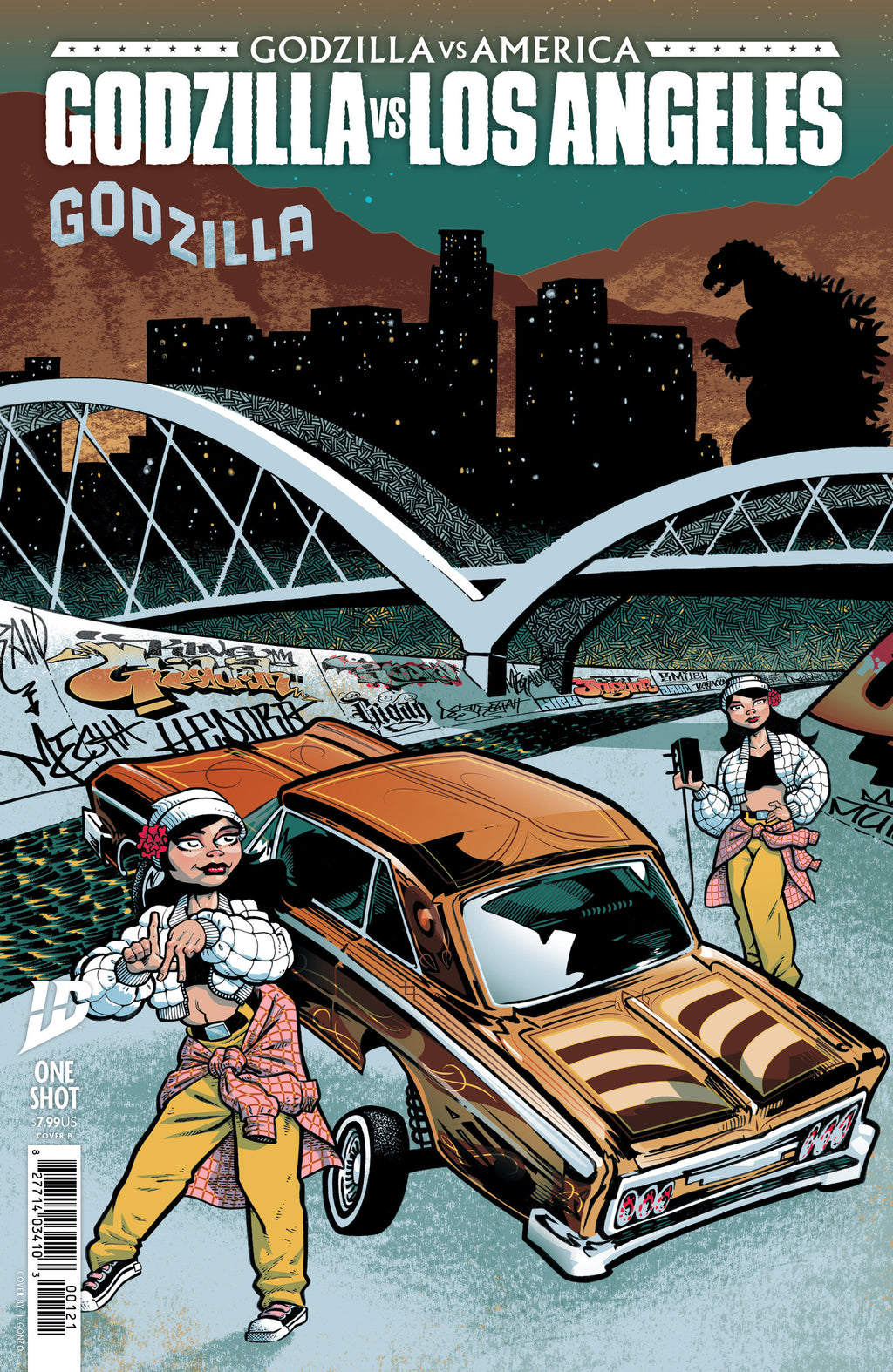 Is the city of angels ready for a God…zilla?Fresh off Godzilla’s destructive stop in Chicago, the King of the Monsters is headed for Hollywood! Join a superstar team of Los Angeles–based comics creators for four incredible stories all set in the filmmaking capital of the world. A terrified film crew does everything they can to trick our favorite kaiju, residents use a guide to LA’s transit system to escape the monsters’ attack, and much, much more in the second installment of Godzilla vs. America!This issue includes stories by Gabriel Hardman (Green Lantern: Earth One, Batman: The Brave and the Bold), J. Gonzo (Image Comics’ La Mano del Destino, Teenage Mutant Ninja Turtles), Dave Baker (Mary Tyler Moorehawk, TMNT: Black, White & Green), and more!
