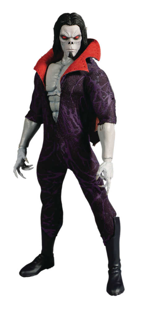 From Mezco Toys. The One:12 Collective welcomes Morbius, the living vampire! Morbius wears a fitted bodysuit with a winged cape and features three head portraits, capturing varying degrees of his grisly nature. The Nobel Prize-winning biochemist comes complete with a multilayer mobile science lab with a light-up function. The removable top layer holds science equipment such as a foldable microscope, handheld hematology analyzer, and removable test tube and beaker, while the bottom layer conceals weapons such as a dagger, customized handgun, and hammer. Each One:12 Collective Morbius figure is packaged in a collector friendly box, designed with collectors in mind.