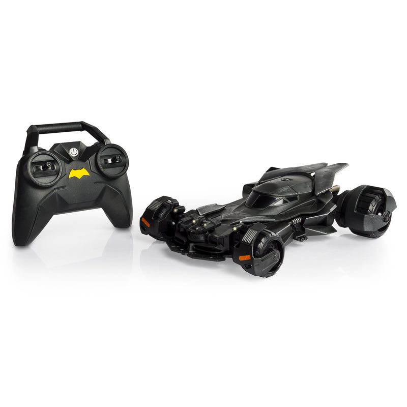 The official Batman v Superman 1/24-scale movie replica remote control Batmobile featuring incredible brushed metal detail, 2.4 Ghz communications and steering responsive mechanical turret. Includes: 1 Air Hogs Batmobile, 1 Remote Control, 1 Instruction Manual.