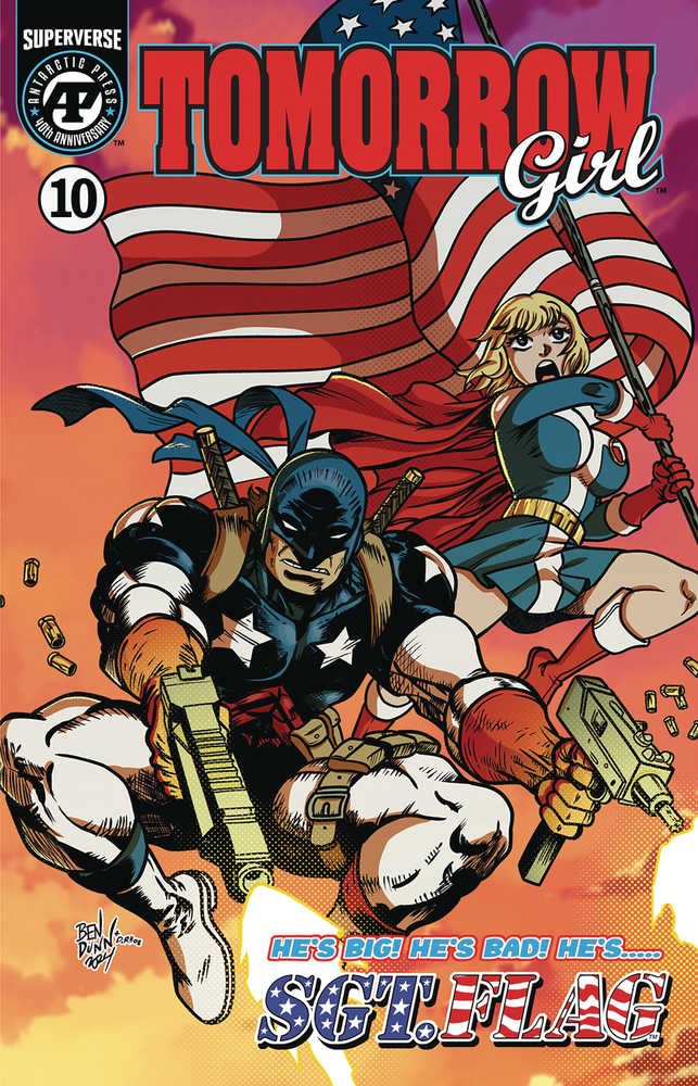 SUPERVERSE TITLE! TRIPLE THE TEAM-UPS, TRIPLE THE TOMORROW GIRL, TRIPLE THE FUN! AMERICAN MANGA SUPERHERO! Rik Offenberger and Hique's bizarre villain The Cockroach proves tricky for Tomorrow Girl to apprehend, until a strange new hero comes to her aid: Sgt. Flag! Then Patricia Krmpotich and Tessa Rose pit our heroine of the hour against Yesteryear, a villain who can stop time! Plus a bonus Herbie story by Larry Guidry!